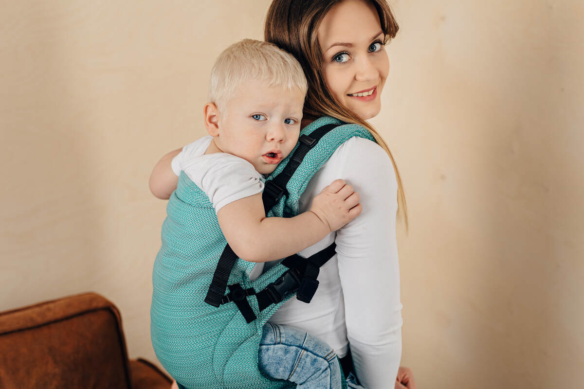 LITTLE HERRINGBONE OMBRE GREEN este un marsupiu reglabil care crește odata cu copilul tău!